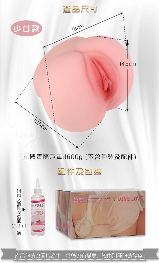 | LONG LOVE臀 ‧ 肉感仿真雙穴雙交倒模自慰器-少女款﹝1600g﹞附贈專用200ml潤滑液