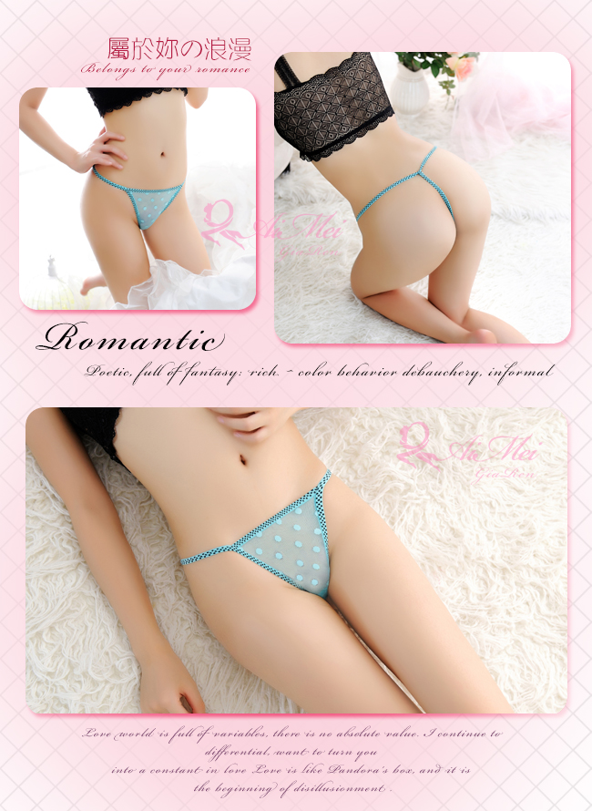 愛戀接觸!透膚迷人點點網紗丁字褲﹝淺藍﹞