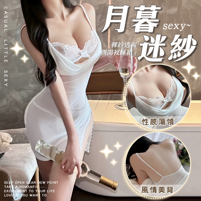 ◇◆偷心威士忌.性感蕾絲透膚腰間側高開衩連身裙( 白色 )◆◇