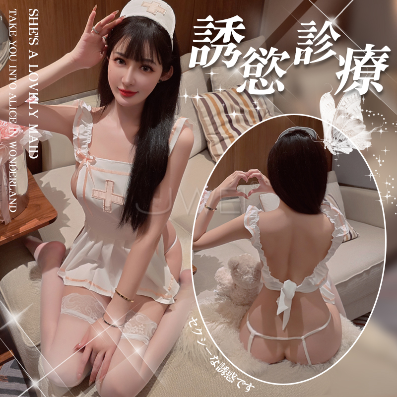 | 萌兔角色扮演連身衣!頸環牽引繩可調背扣蕾絲三件組