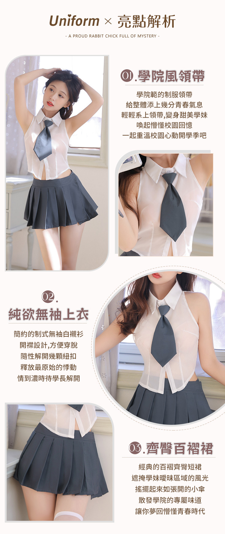 ►您現在的位置:首頁>純欲學院風.稚氣學妹 分體學生制服套裝(不含絲襪)