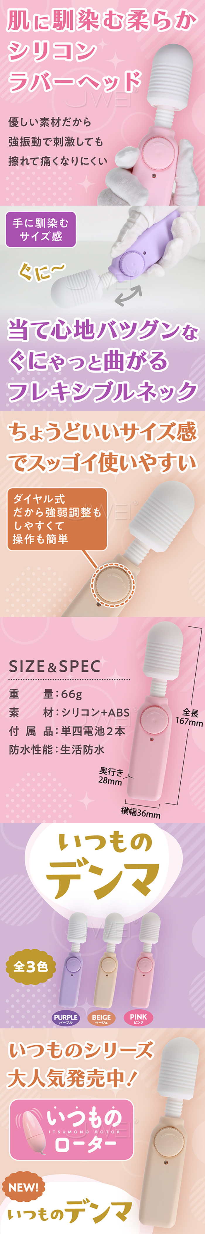 ►您現在的位置:首頁>日本原裝進口Prime.いつものデンマ 滾動調節小型AV震動棒【米黃】
