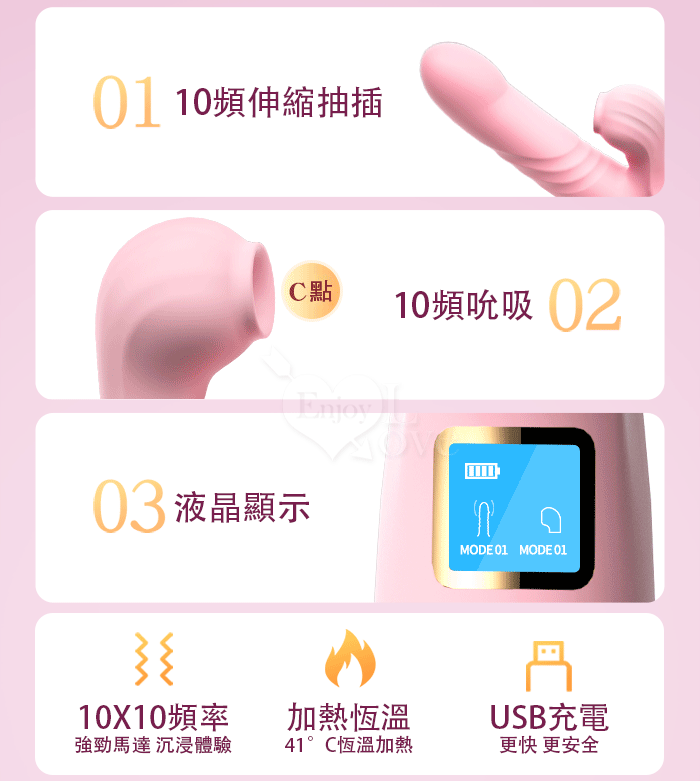 | 幻影 ‧ 10頻伸縮抽插X10頻吮吸智能內外夾攻按摩棒﹝加熱恆溫+液晶顯示頻率+USB充電﹞甜蜜粉