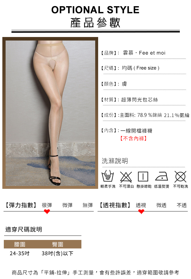 | 超薄包芯絲開襠一線連褲絲襪﹝膚﹞