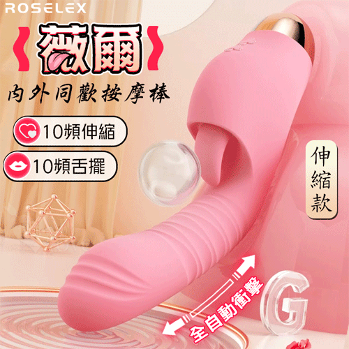ROSELEX 勞樂斯 ‧ 薇爾 伸縮款 10X10伸縮衝撞+舌擺刺激 內外同歡多功能按摩棒