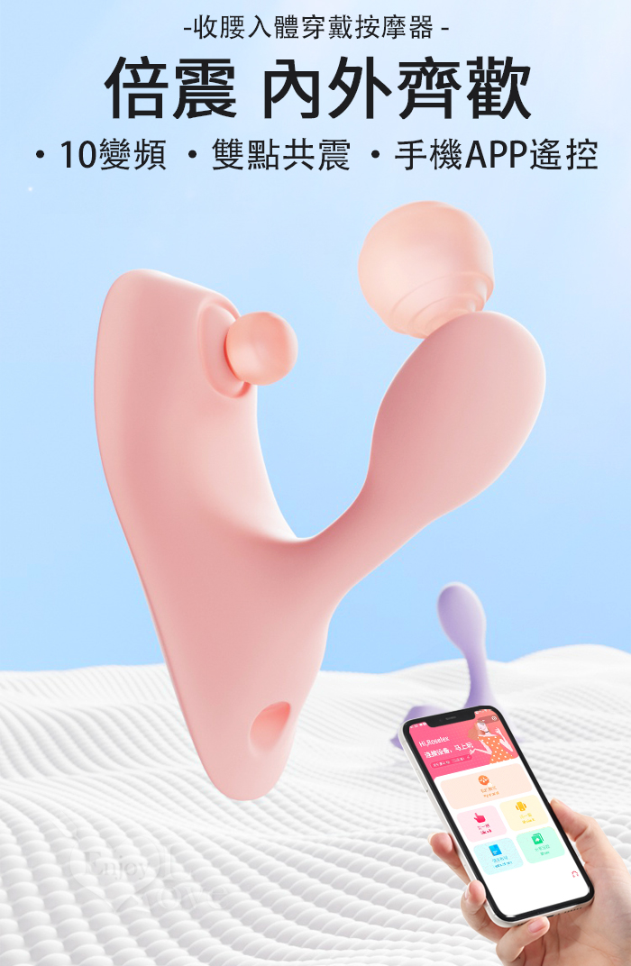 ►您現在的位置:首頁>ROSELEX 勞樂斯 ‧ 倍震 內外齊歡 10變頻雙點共震 收腰入體穿戴按摩器 - 手機APP遙控﹝具兩種操控模式﹞