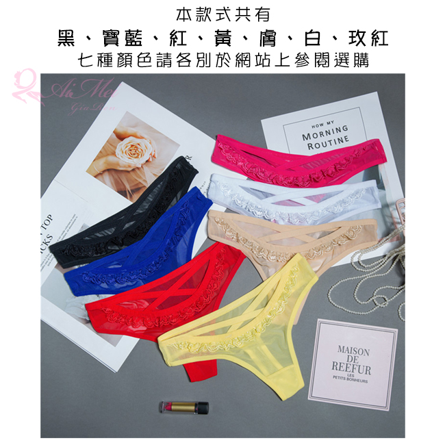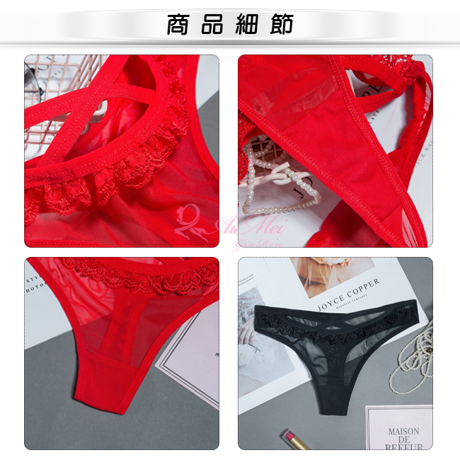 ►您現在的位置:首頁>溫柔暗號!前交叉細帶滾邊蕾絲網紗中腰T字褲﹝黑﹞