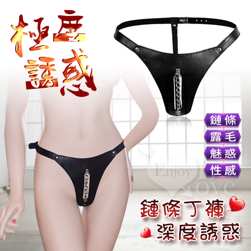 | 極度誘惑 - 女式皮質低腰露毛鏈條丁字褲