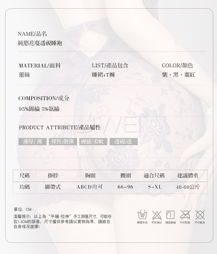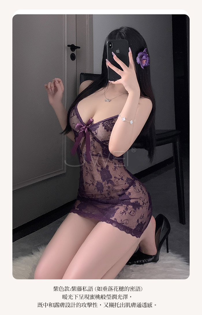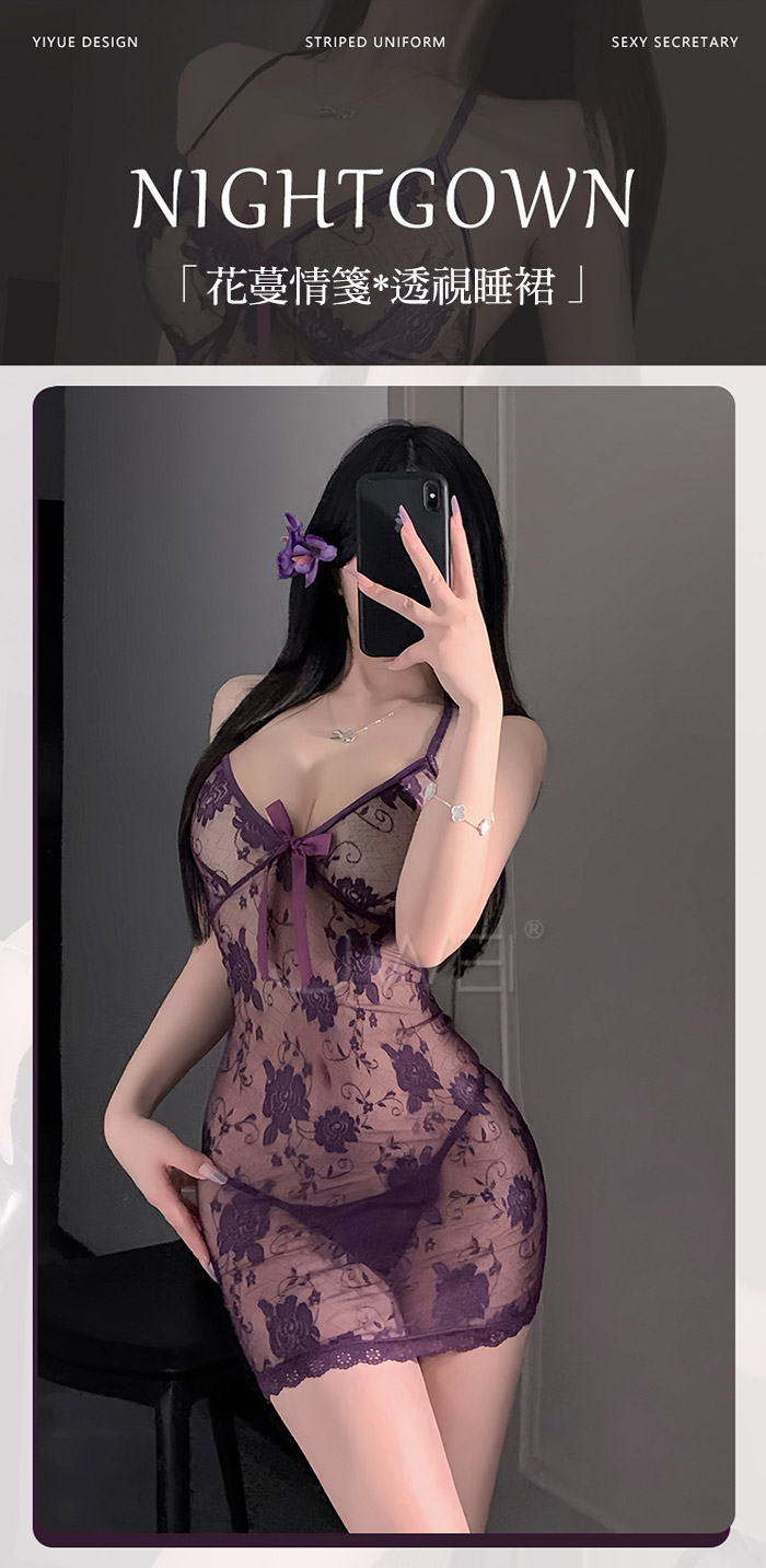 ►您現在的位置:首頁>枕邊禁語.純欲花蔓薄紗透視睡裙-紫色【睡裙+T褲】
