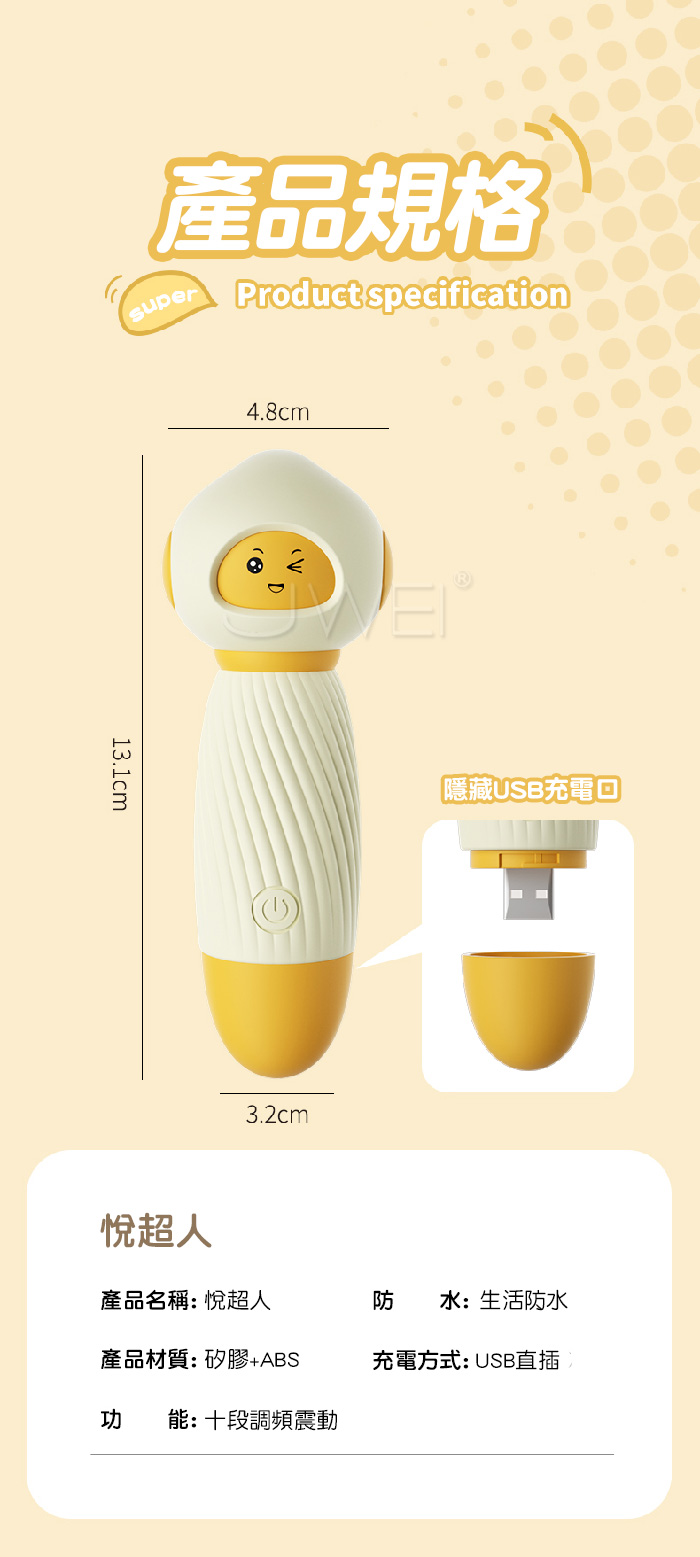 ►您現在的位置:首頁>悦超人.SUPER 萌物猛攻 10段高頻強震玩轉高潮 造型AV按摩棒