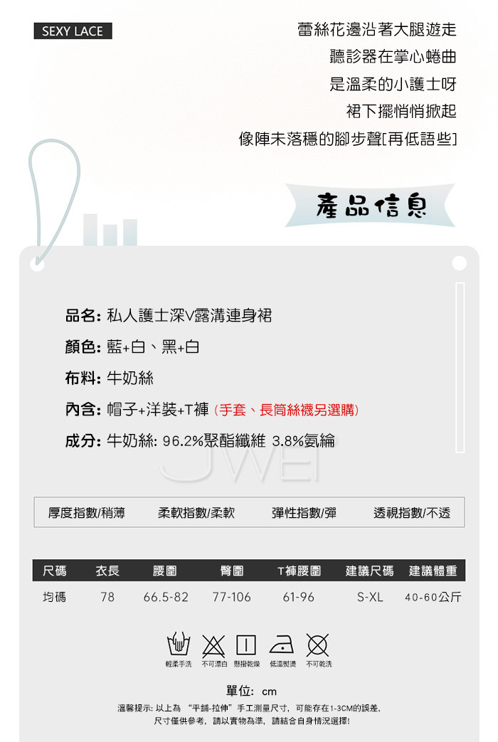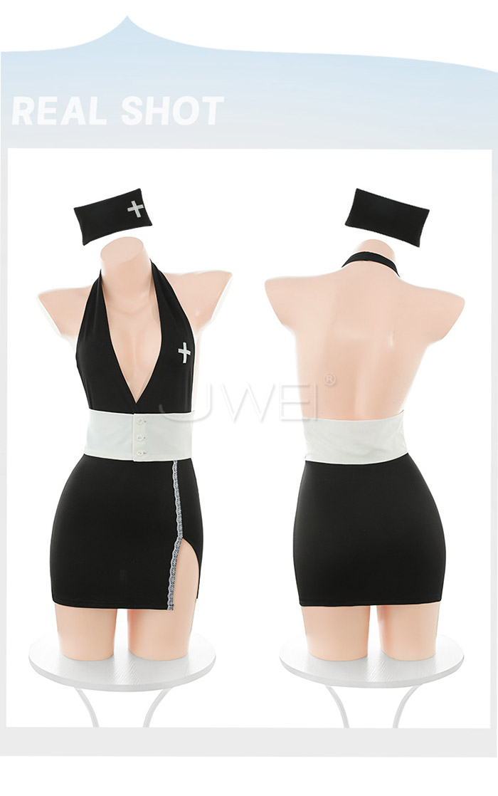 ►您現在的位置:首頁>甜氧小護士.私人護士深V露溝微開衩包臀連身裙-藍色【帽子+洋裝+T褲】