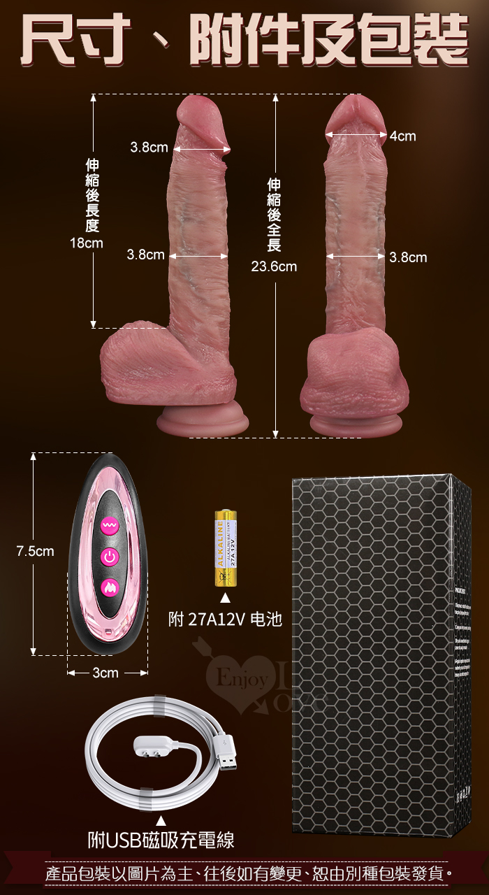 卡梅倫 ‧ 無線遙控抽送撞擊 液態矽膠超肉感逼真大老二﹝強勁蠕動伸縮震動+加溫+吸盤+磁吸充電﹞