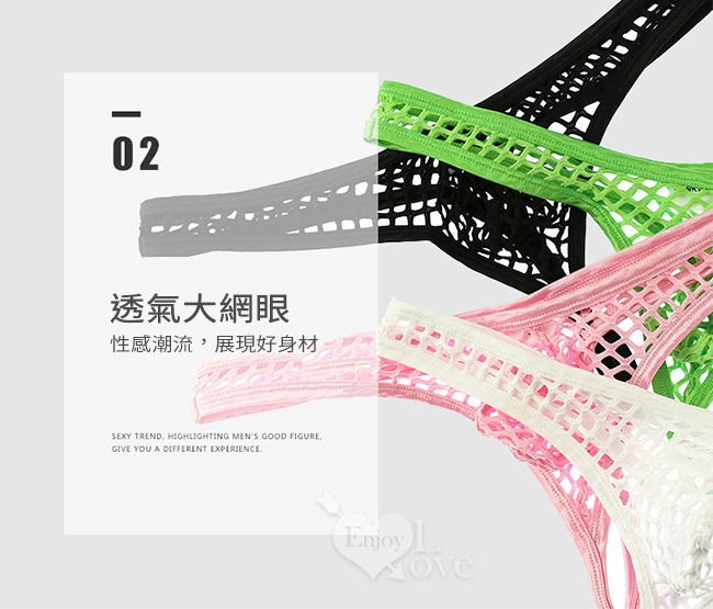 | 《 Enjoy Love 》性感半透大網孔男士丁字褲 - 粉﹝M﹞