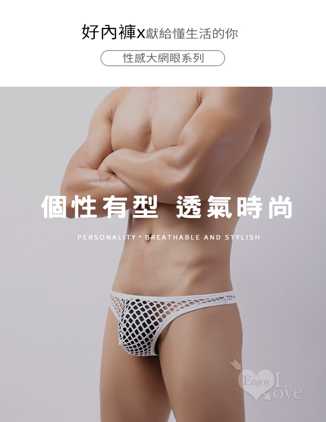 | 《 Enjoy Love 》性感半透大網孔男士丁字褲 - 白﹝S﹞