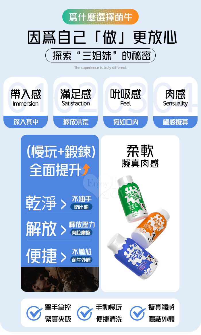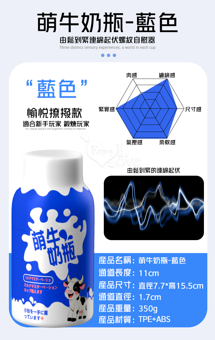 萌牛奶瓶 ‧ 鬆到緊連綿起伏螺紋自慰器﹝進階歡愉撩撥款-藍色﹞