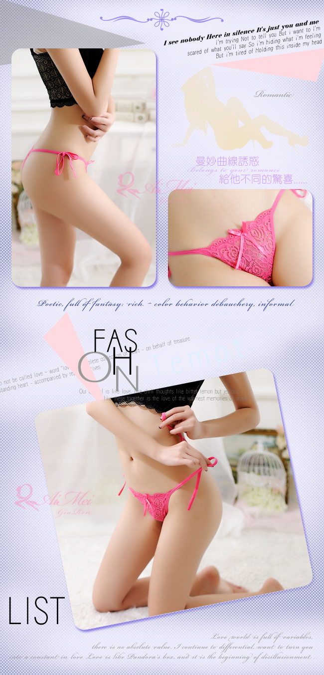 | 窺探之夜!誘人側綁帶蕾絲丁字褲﹝玫紅﹞
