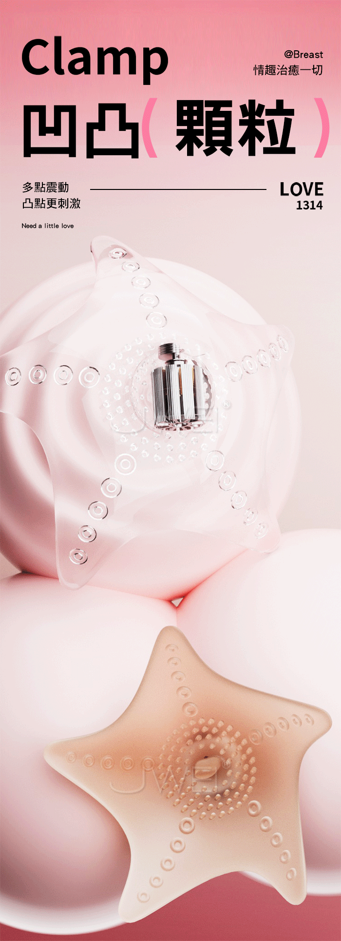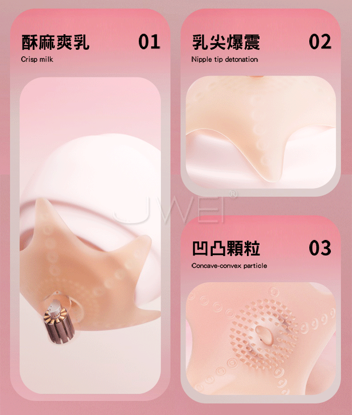 吸星乳貼 酥麻爽乳雙峰爆震 凹凸顆粒多點震動凸點更刺激! 強震乳尖 輪番刺激 失控難以控制,密合貼乳 精準包裹,親膚柔軟更細膩 ■尺寸:大小詳如圖片標示 ■材質:矽膠+ABS ■供電:LR44鈕扣電池 ■規格:一對裝 ■功能:單頻震動