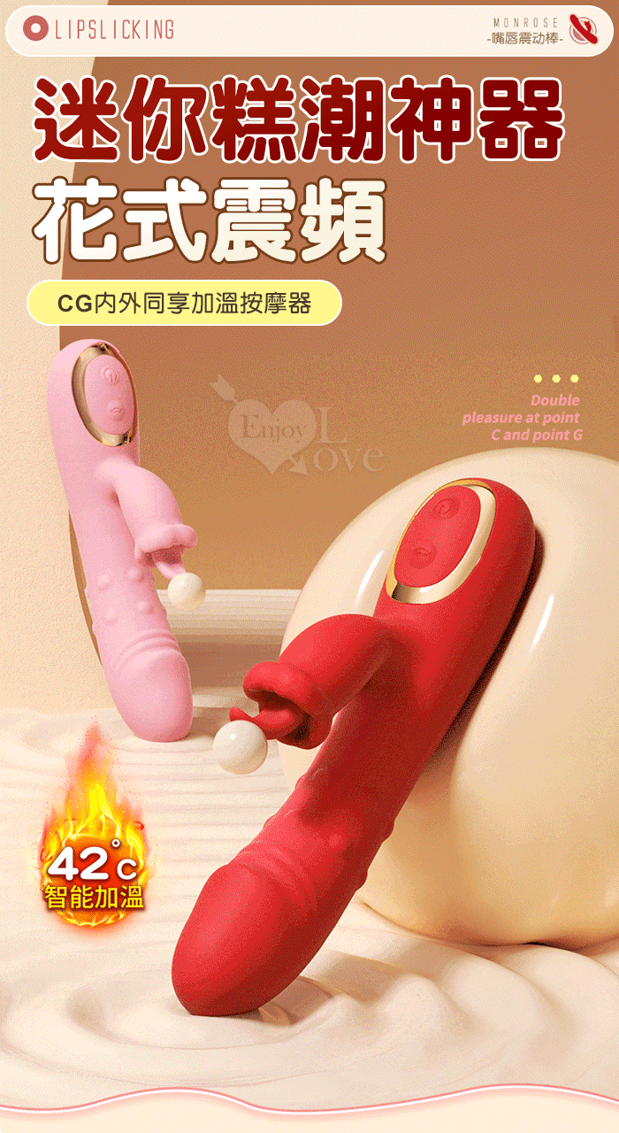 | ROSELEX 迷你糕潮神器 雙10頻雙激震舌擊點 CG內外同享加溫按摩器 - 粉