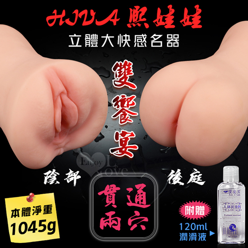 HIVA熙娃娃 ‧ 雙饗宴~前陰+後臀 貫通兩穴通道立體肉芽顆粒磨蹭大快感名器﹝附贈120ml潤滑液﹞